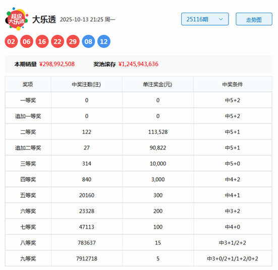 发布日期:2025-10-26 07:06 点击次数:185上期开奖:大乐透第2025116期开奖号码为:02、06、16、22、29+08、12。