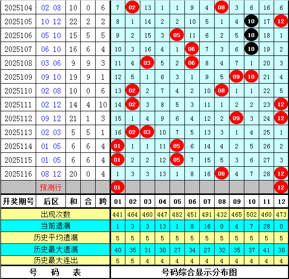 其中,后区012路比5:8:7,奇偶比7:13,大小比11:9,本期一码看好12。